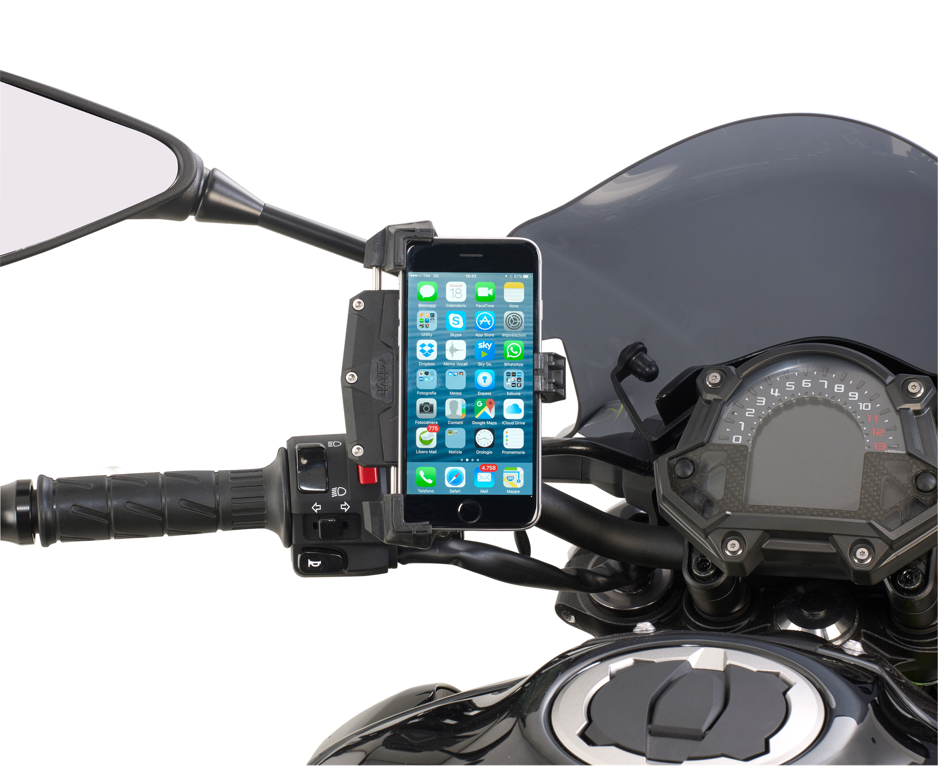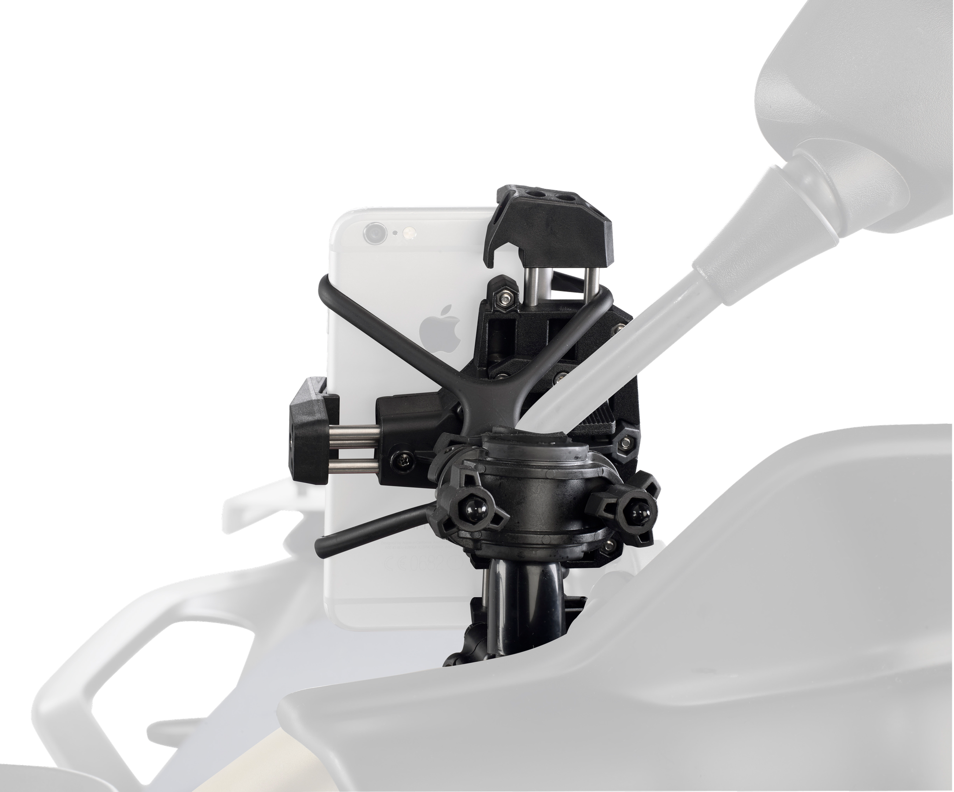Universal-Smartphone Halter zur Montage auf Motorrädern, Rollern, Fahrräder und Quads. Für Smartphones mit folgender Außengröße: min. 112 x 52mm – max. 148 x 75mm