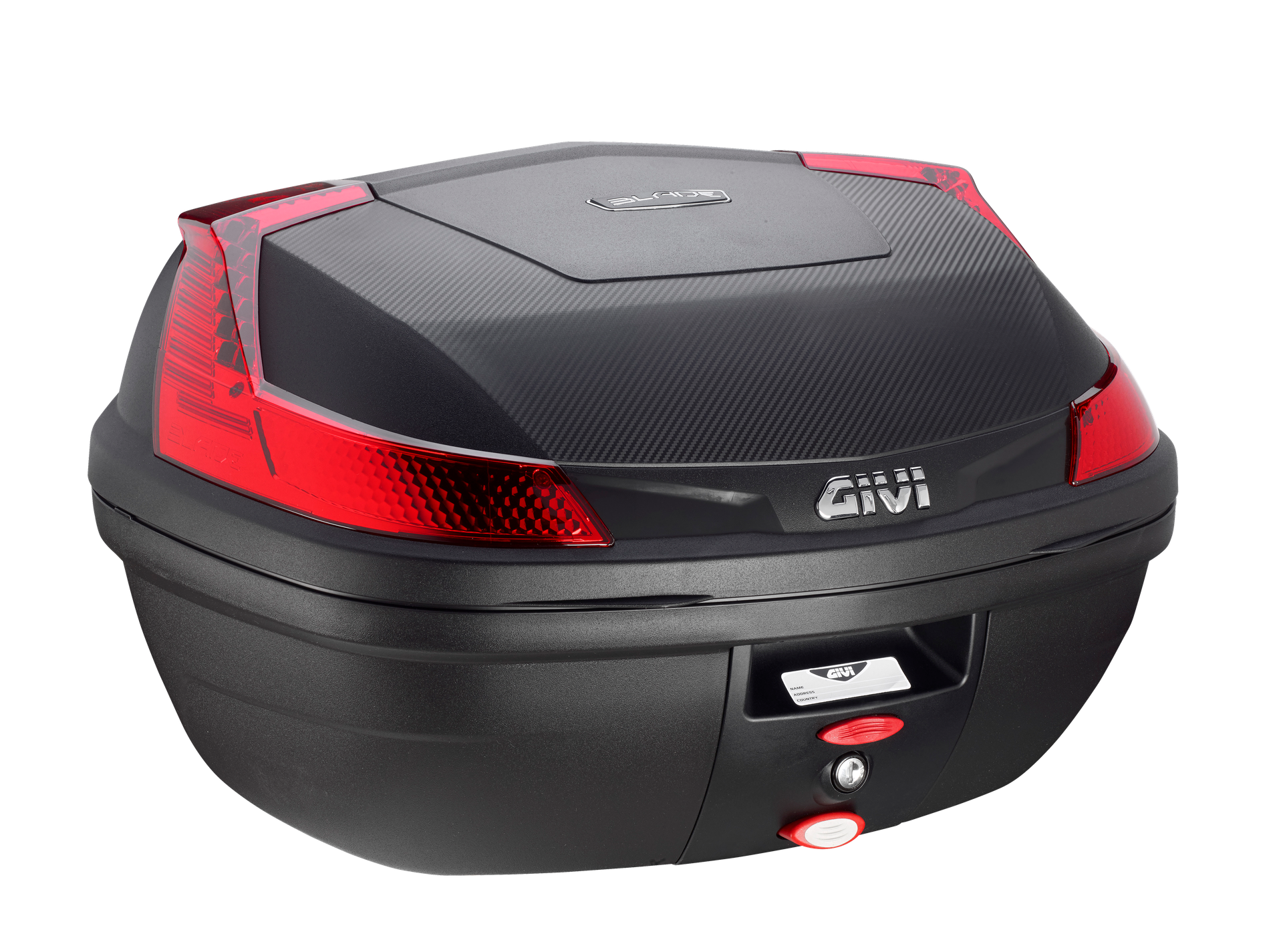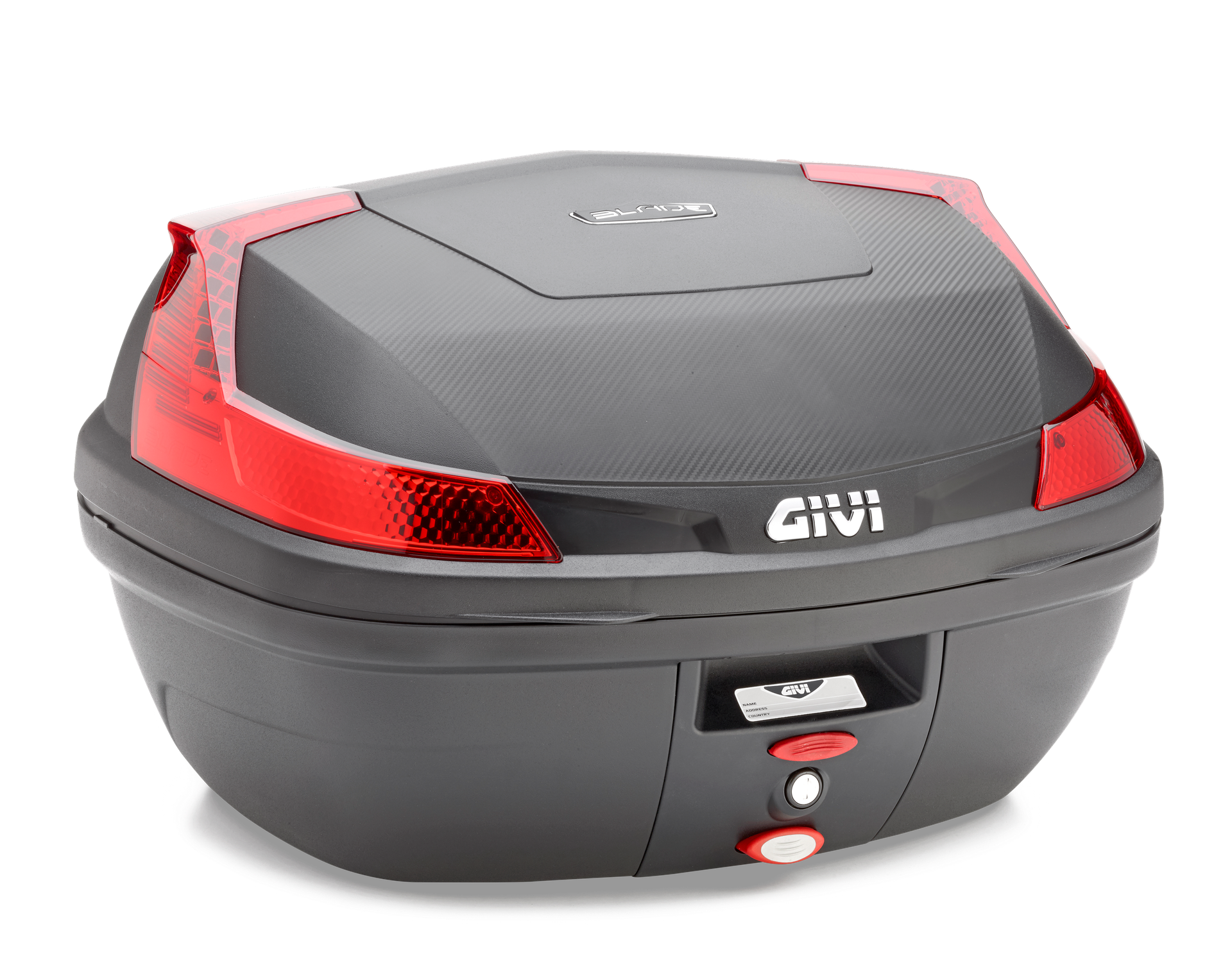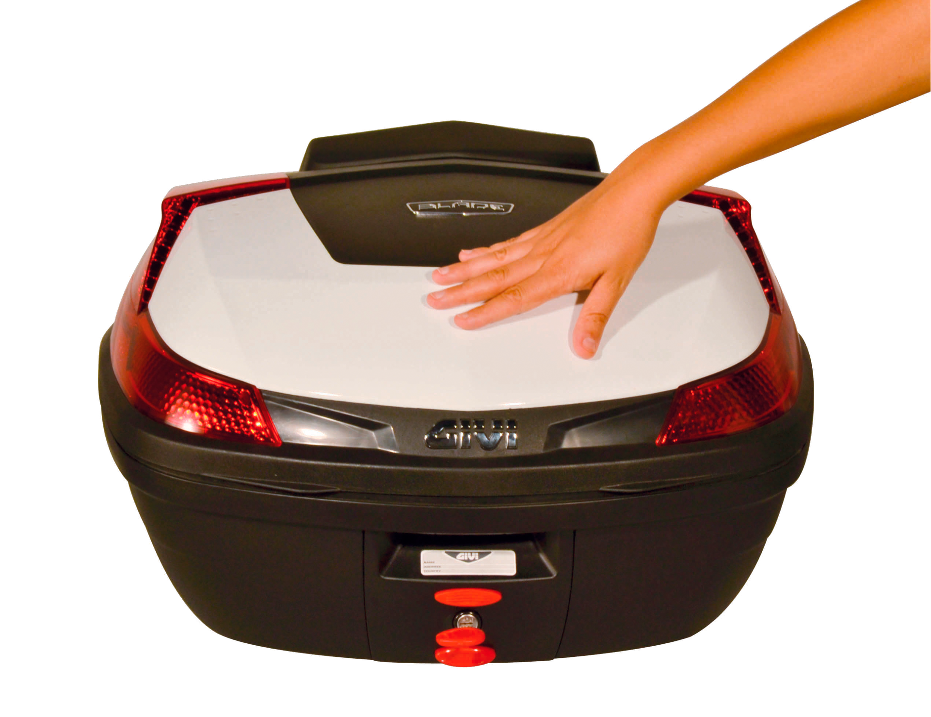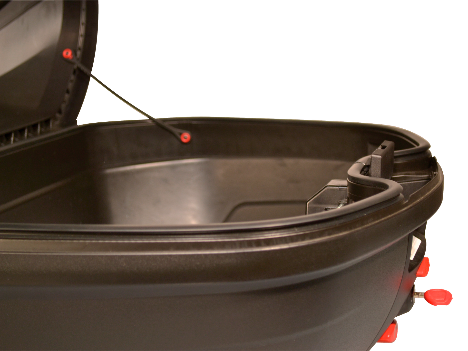Baúl MONOLOCK® 47 L. (negro) con catadióptricos rojo. Incluye parrilla y kit de fijación universal