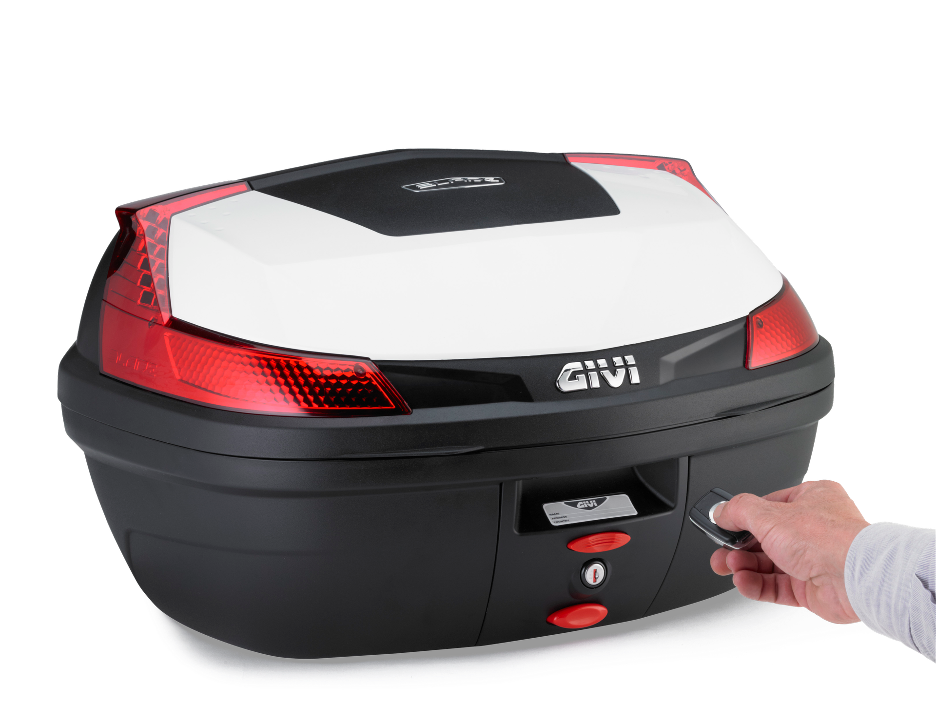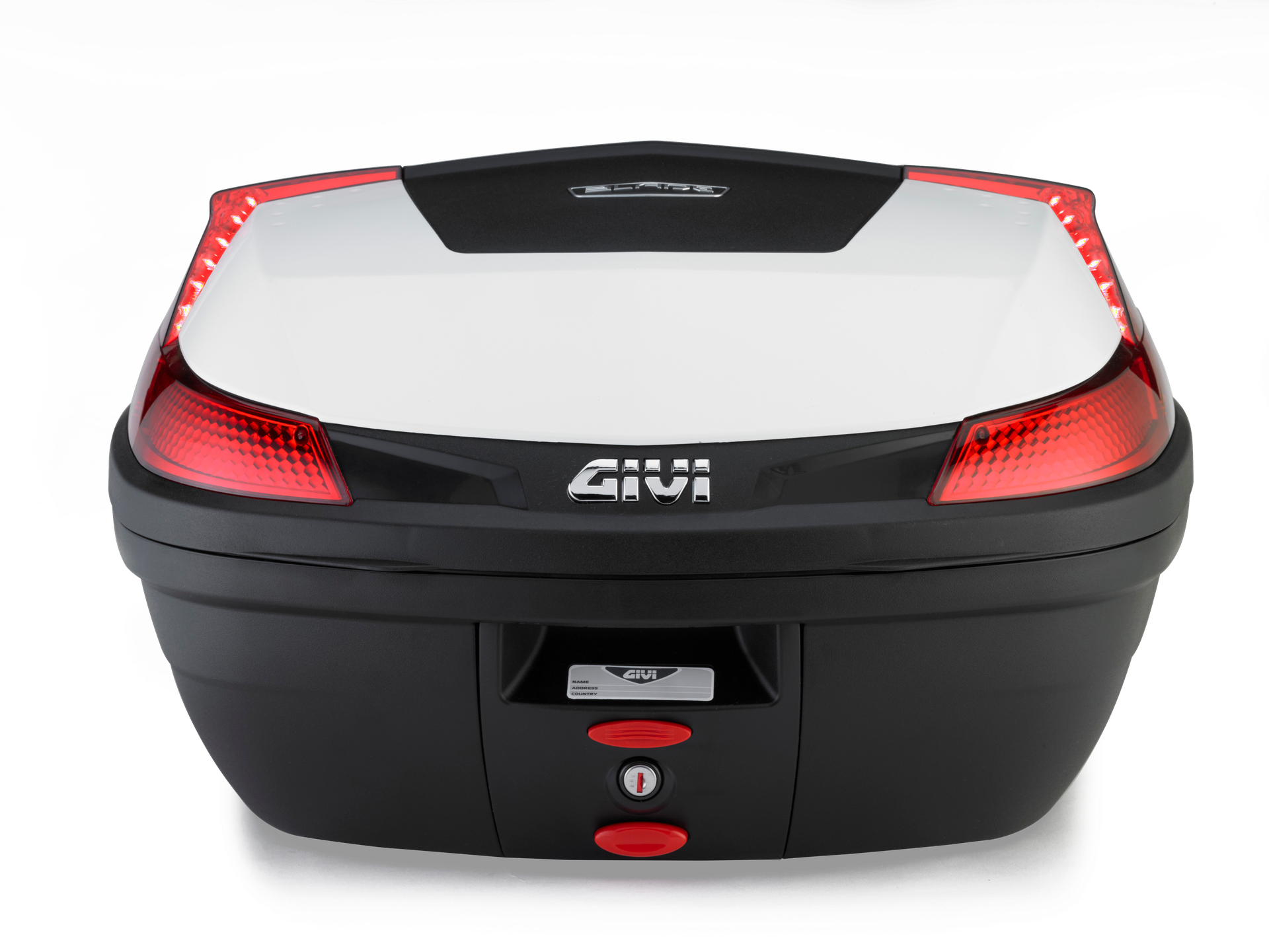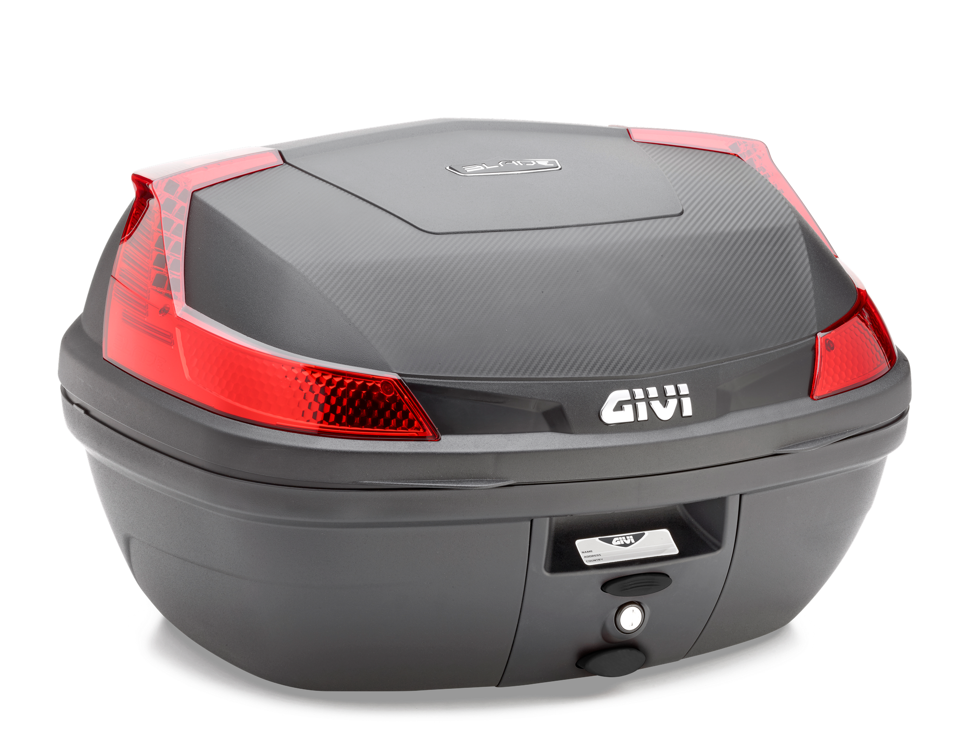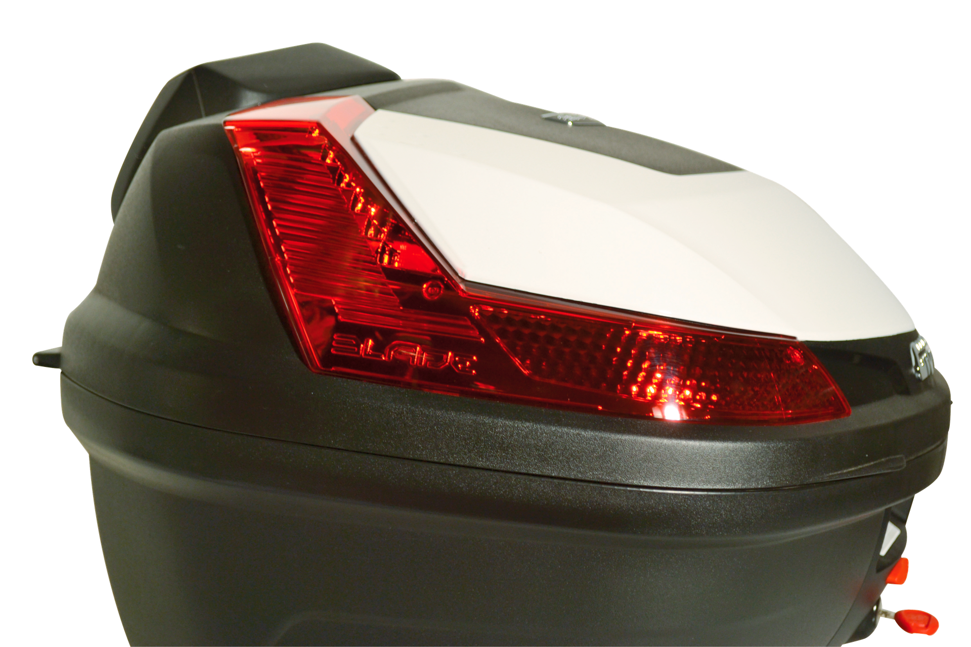 Baúl MONOLOCK® 47 L. (negro) con catadióptricos rojo. Incluye parrilla y kit de fijación universal