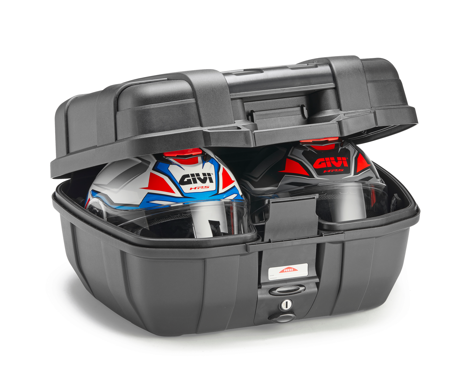 [FAKE] La forma ergonomica del bauletto Maxia 5 da 58 lt permette di alloggiare comodamente 2 caschi modulari di grandi dimensioni. La maniglia frontale estraibile, con serratura Security Lock di serie, facilita il trasporto a mano, mentre la borsa interna optional e lo schienalino per il passeggero assicurano il massimo comfort anche durante i lunghi viaggi.
