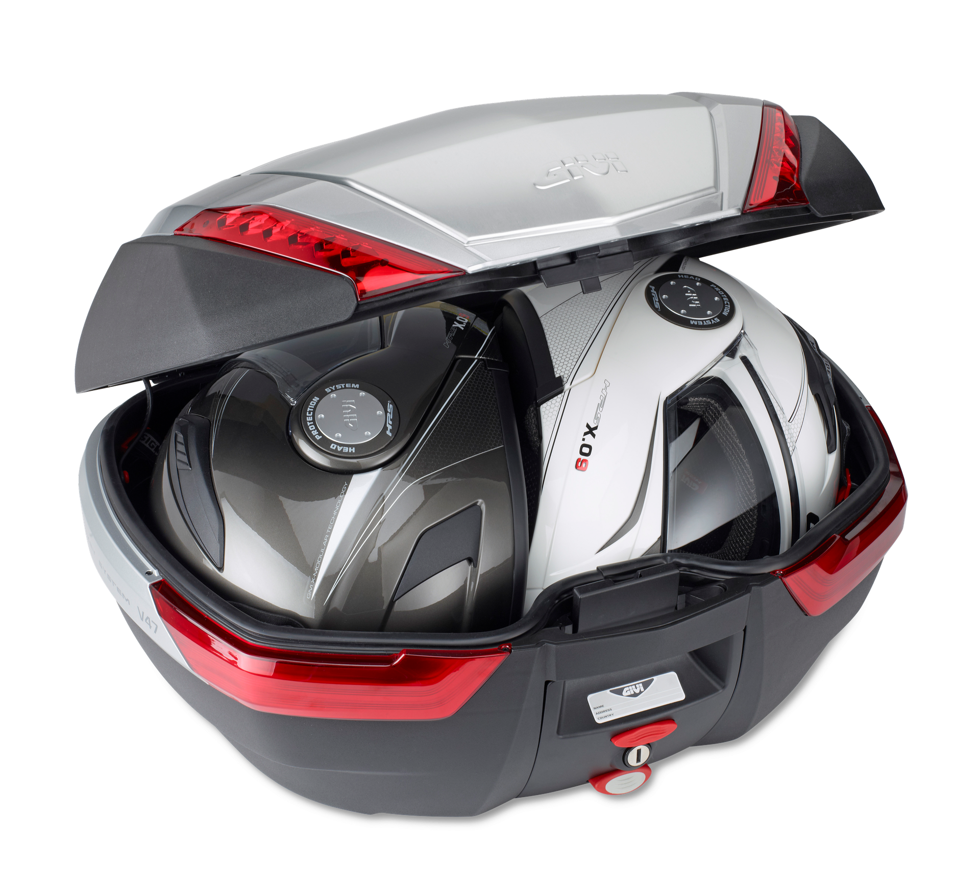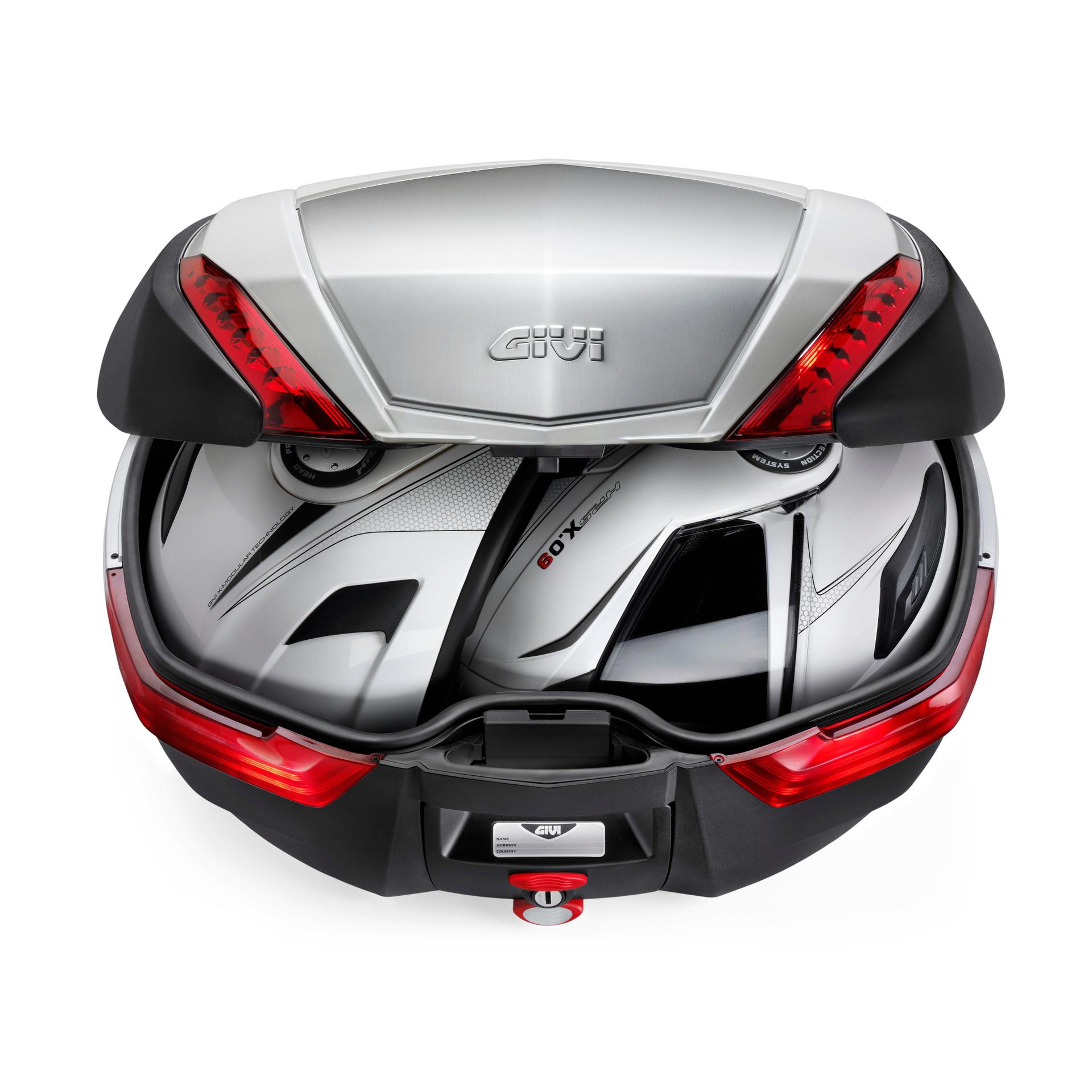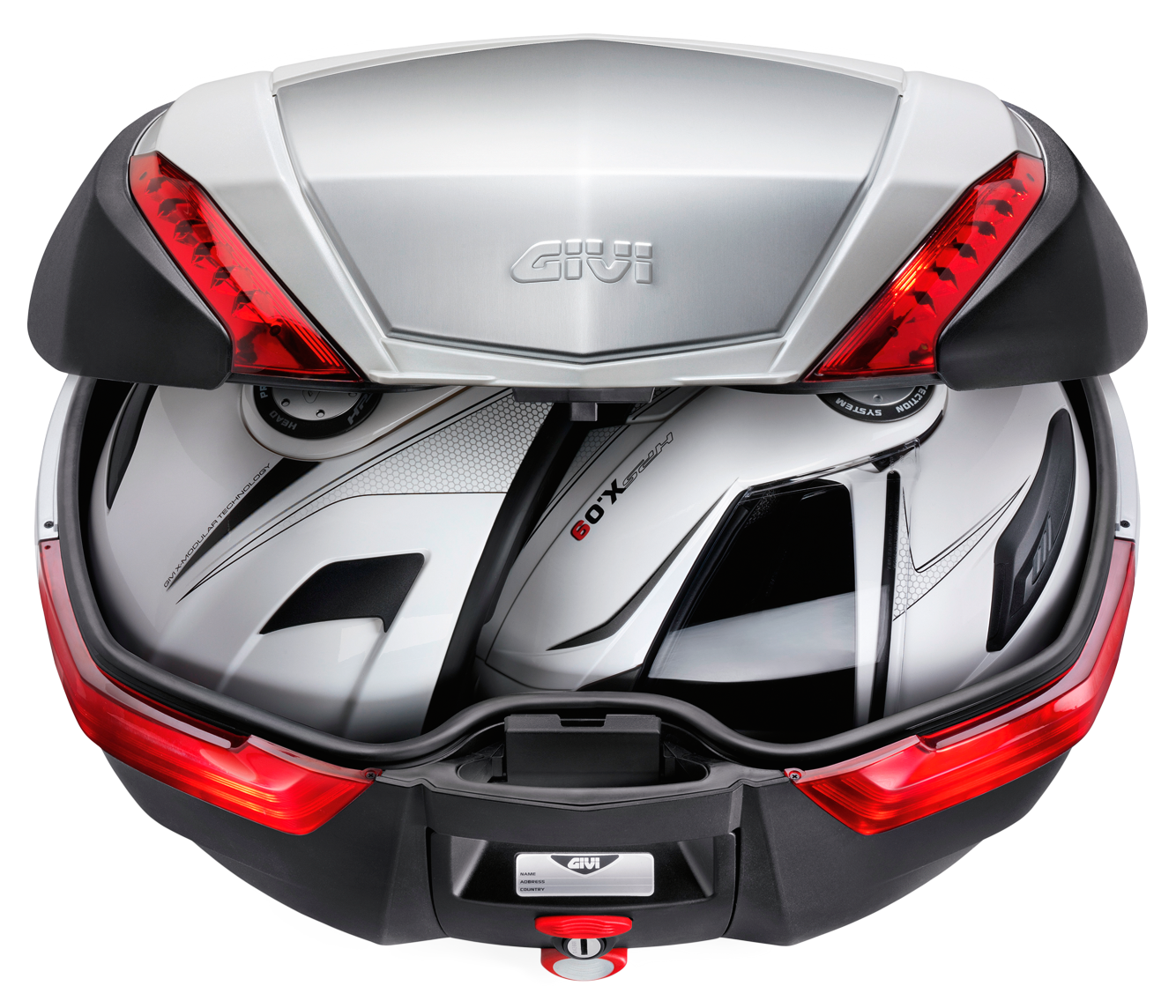 [FAKE] La forma ergonomica del bauletto Maxia 5 da 58 lt permette di alloggiare comodamente 2 caschi modulari di grandi dimensioni. La maniglia frontale estraibile, con serratura Security Lock di serie, facilita il trasporto a mano, mentre la borsa interna optional e lo schienalino per il passeggero assicurano il massimo comfort anche durante i lunghi viaggi.