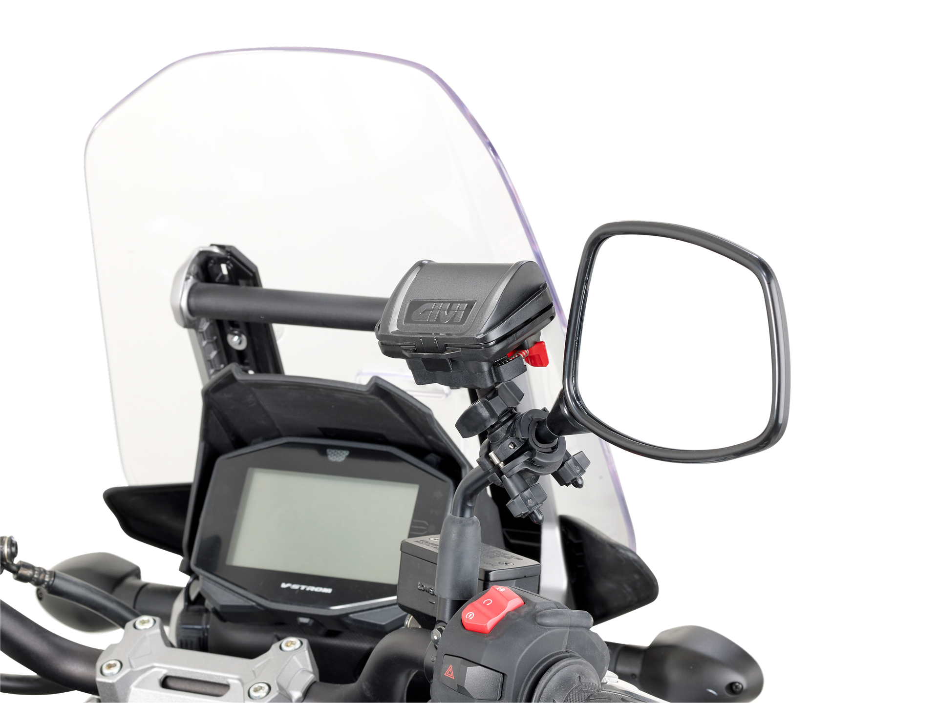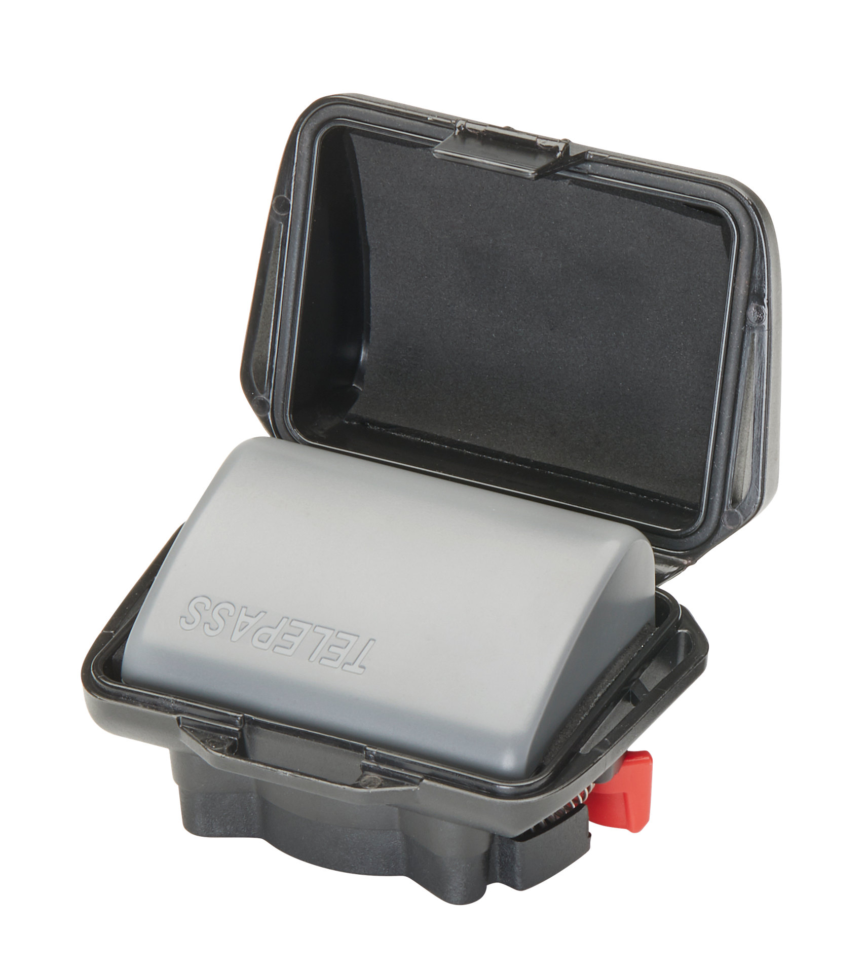 Boîtier universel pour dispositifs de paiement de péage autoroutier européen, doté d'un kit universel pour le fixer sur le guidon, les traverses ou les rétroviseurs.